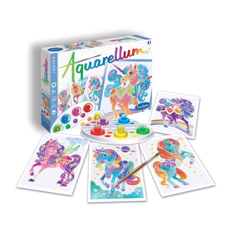 Peinture aquerelle - SENTOSPHERE - Aquarellum Junior - Licornes - 5 couleurs - Sertissage sur papier Vélin - Des 5 ans