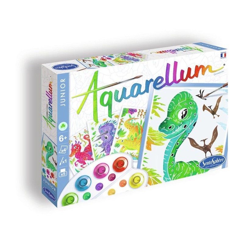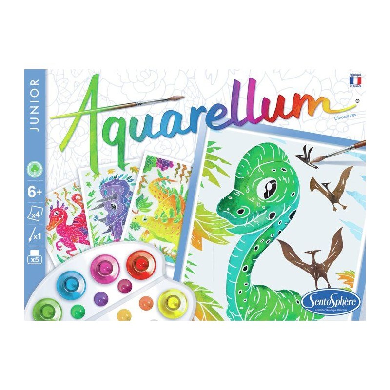 Peinture aquerelle - SENTOSPHERE - Aquarellum Junior - Dinosaures - 5 couleurs - Sertissage sur papier Vélin - Des 7 ans
