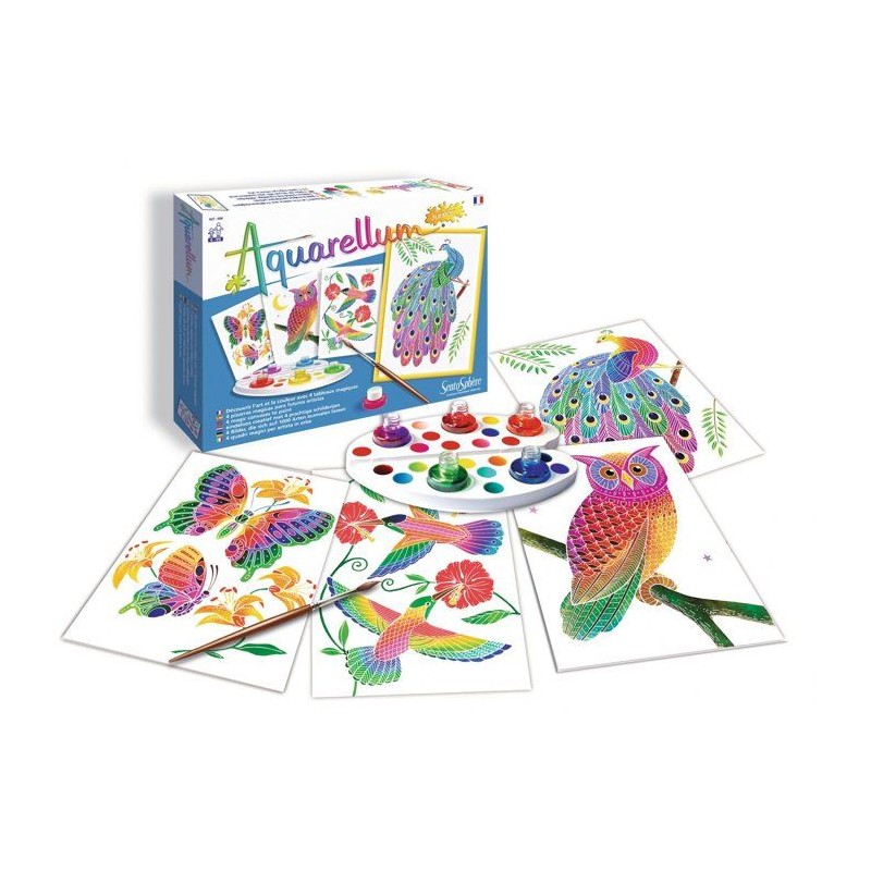 Fantastique ! Quelques gouttes de peinture et tous les enfants pourront réaliser de véritables chefs-d'oeuvre. Aquarellum Junior est basé sur une technique, créée par Véronique Debroise, de sertissage sur papier vélin, qui ne laisse la peinture adhérer que sur des surfaces réservées. Le motif apparaît au fur et a mesure du passage du pinceau et peut etre repeint jusqu'a ce que le tableau soit parfait. Une activité idéale pour initier les enfants a l'art en comprenant le mélange des couleurs, stimuler l'imaginaire et la concentration.