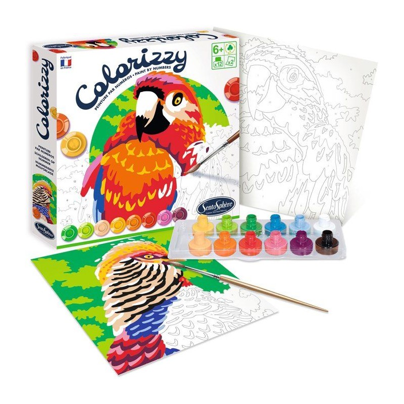 Peinture Acrylique - SENTOSPHERE - Colorizzy - Oiseaux - Peinture a numéro pour jeunes artistes - Des 8 ans