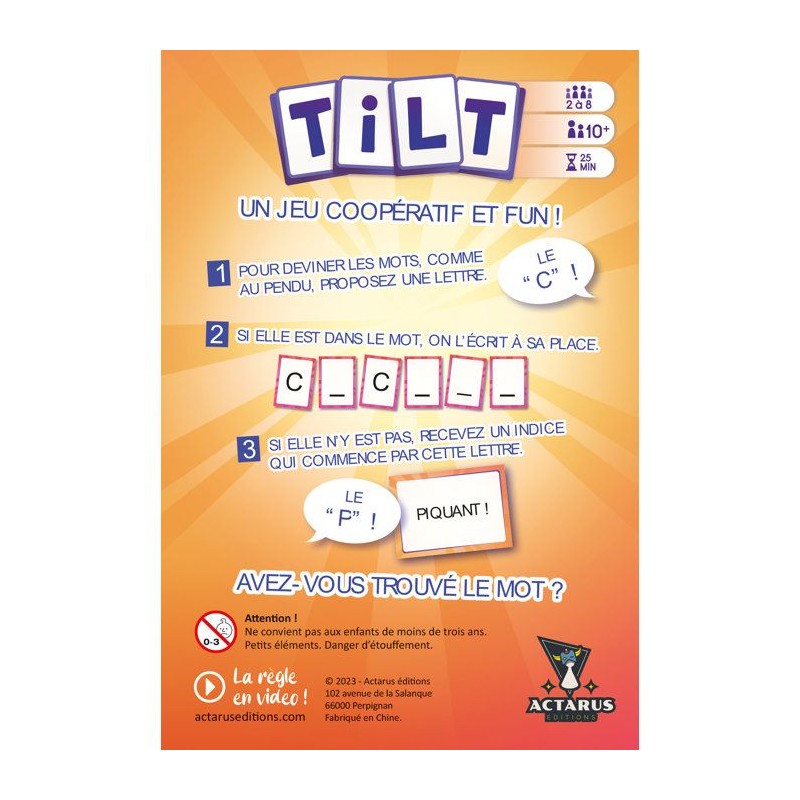 ACTARUS - Tilt- Jeu de société coopératif - Ambiance - Mots a deviner - Des 10 ans - 2 a 8 joueurs - 25 min