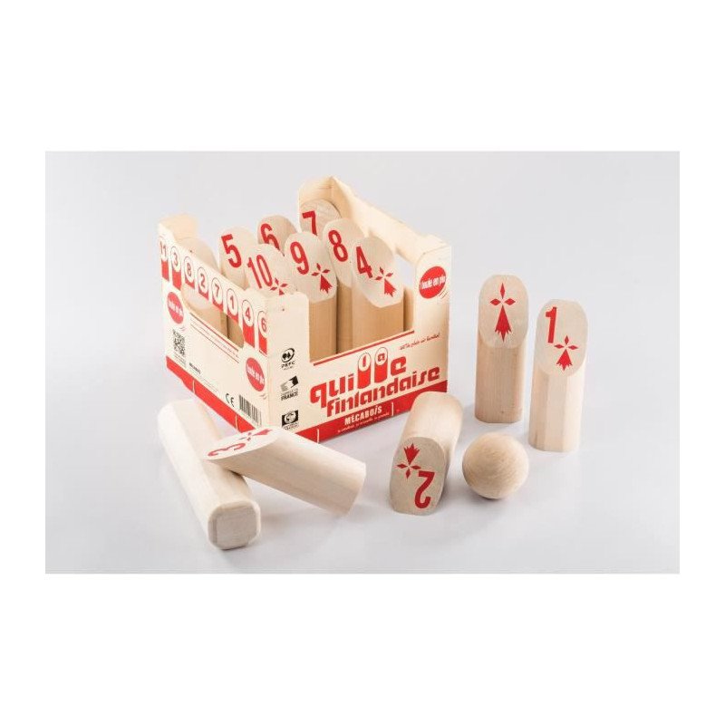 Jeu de quille finlandaise composé de 12 quilles, d'un maillet et d'une boule - Fabriqué en France - Bois certifiés PEFC - Garçon et Fille - A partir de 6 ans - Livré a l'unité