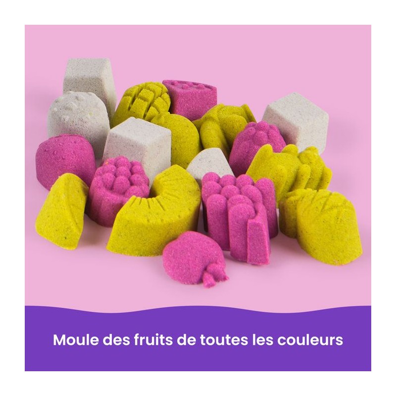 Le seul sable qui ne seche pas et ne s'émiette pas pour des créations plus solides et tout en couleurs. Elaboré a partir de sable naturel, facile a nettoyer et facile a modeler. Une incroyable machine pour créer et personnaliser des glaces et des smoothies avec 396 grammes de sable (3 couleurs : rose, jaune et blanc), 1 outil et de nombreux accessoires inclus. Utilise les moules pour te créer des fruits puis mixe-les dans le mélangeur avant de le servir dans le gobelet. Tu peux meme créer des glaces a l'eau fruitées. Mode de jeu ouvert pour des créations sans limites. Boîte fermée. A partir de 5 ans.