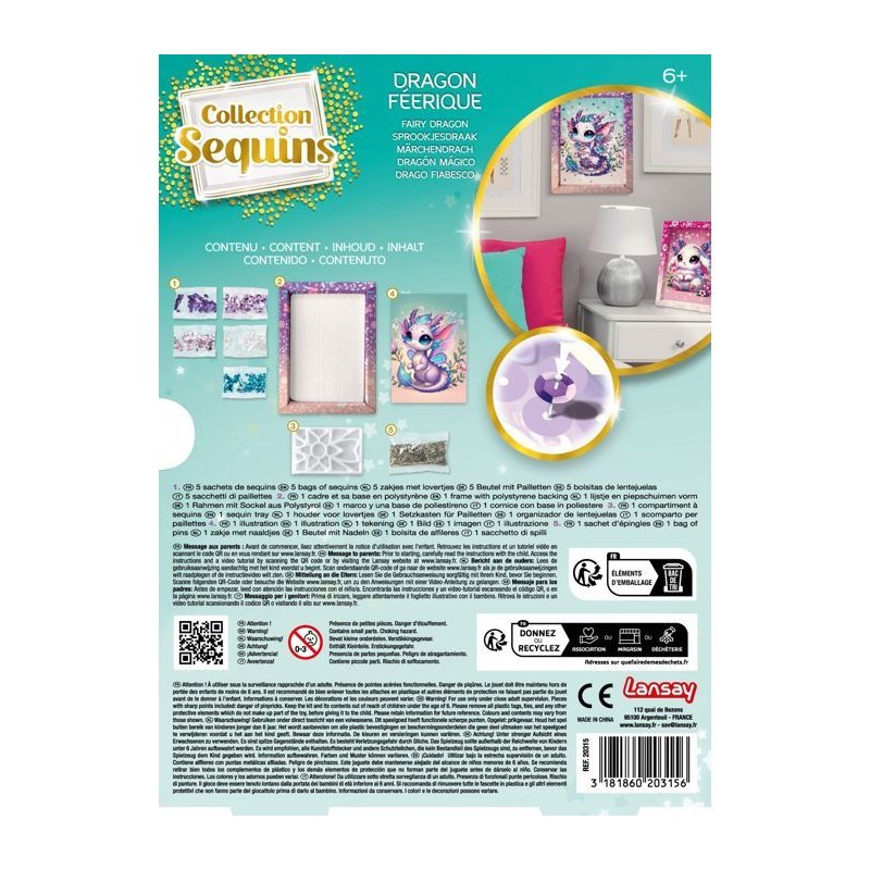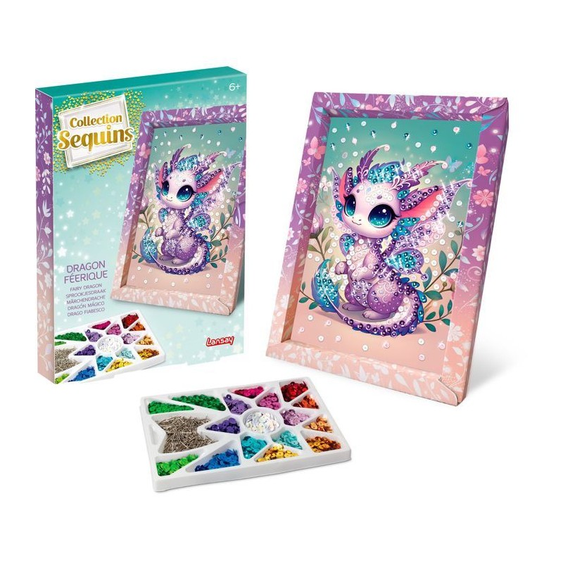 Kit loisir créatif - LANSAY - Collection sequins féérique - Dragon - Des 6 ans