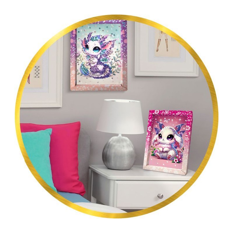 Réalise des créations étincelantes avec Collection Sequins! Dans ce kit, tu trouveras une illustration dans son cadre, avec une plaque de polystyrene qui sert de base pour fixer les sequins a l'aide de petites épingles. Un compartiment a sequins t'aidera a ranger tous tes sequins sans les mélanger ! La place de chaque sequin est imprimée sur l'image, afin que tu puisses facilement identifier et positionner les sequins correspondants. Accroche ou pose ton cadre pour décorer ta chambre !