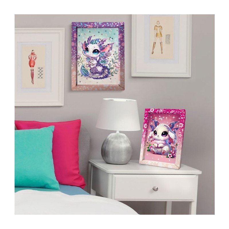Réalise des créations étincelantes avec Collection Sequins! Dans ce kit, tu trouveras une illustration dans son cadre, avec une plaque de polystyrene qui sert de base pour fixer les sequins a l'aide de petites épingles. Un compartiment a sequins t'aidera a ranger tous tes sequins sans les mélanger ! La place de chaque sequin est imprimée sur l'image, afin que tu puisses facilement identifier et positionner les sequins correspondants. Accroche ou pose ton cadre pour décorer ta chambre !