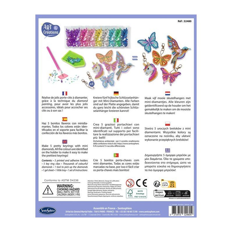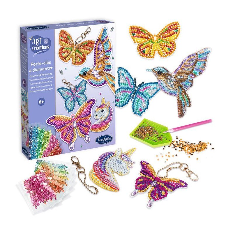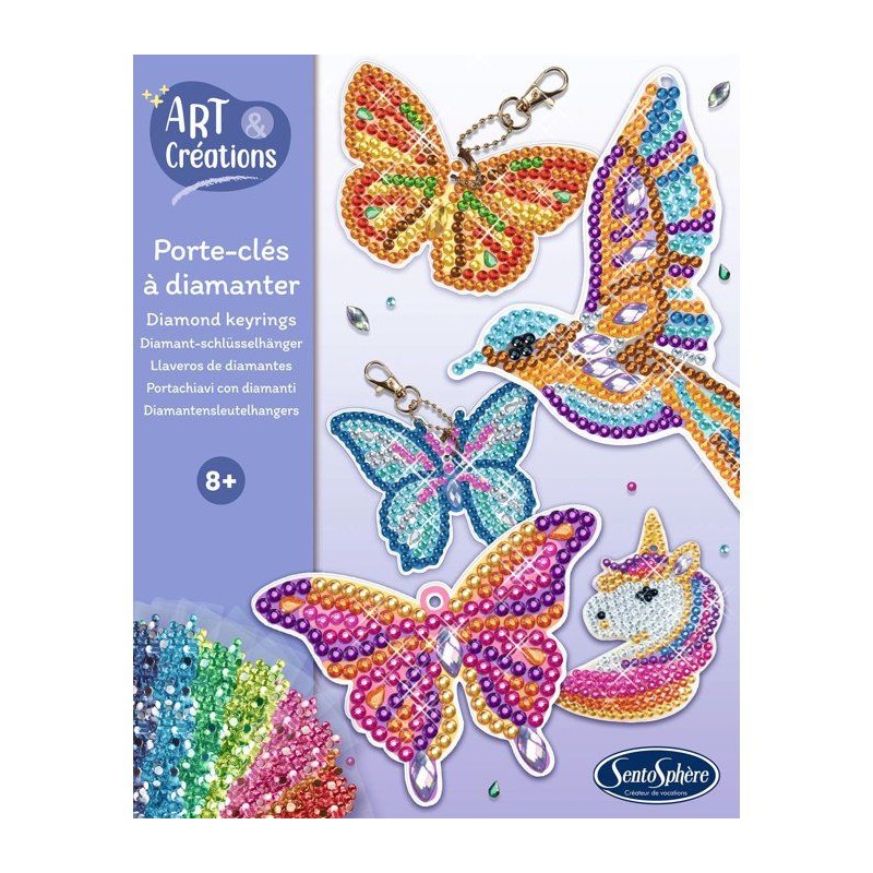 Porte-Clés a diamanter - SENTOSPHERE - Art & Créations - 5 supports - Strass Multicolores - 5 attaches - Des 8 ans