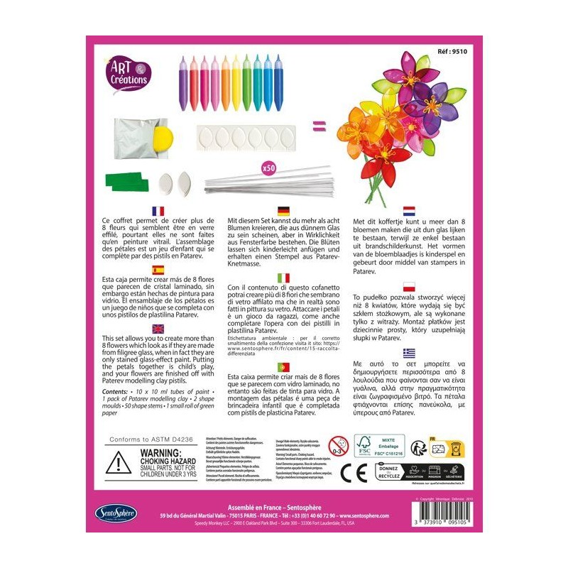 Peinture Vitrail - SENTOSPHERE - Art & Créations - Crystal Flor - 8 fleurs a créer en verre effilé - Des 8 ans