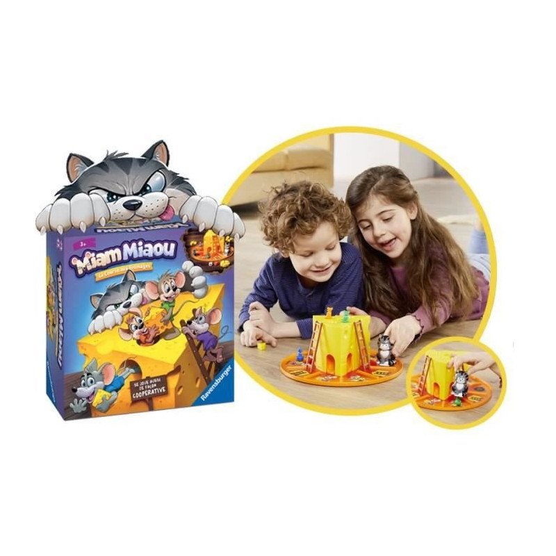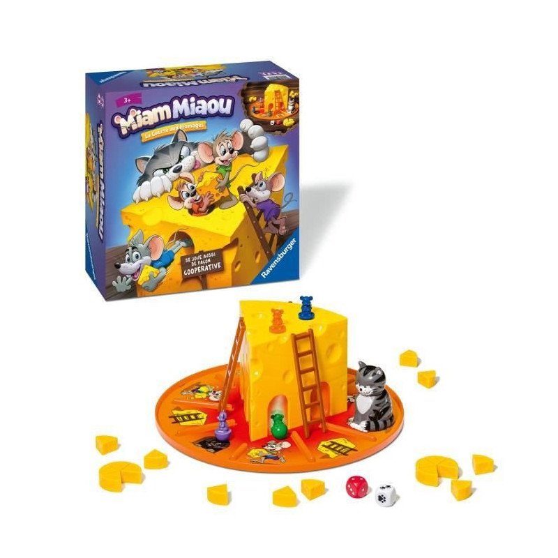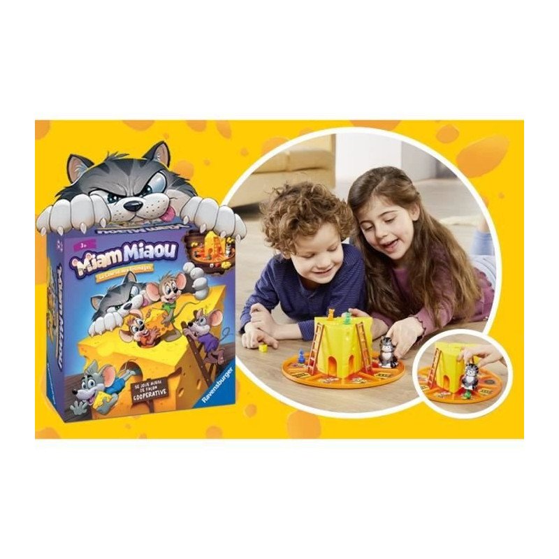 Miam Miaou - Ravensburger - La course aux fromages - Jeu de societe Enfants - 3 niveaux de difficulté - 2 a 4 joueurs - Des 3 a