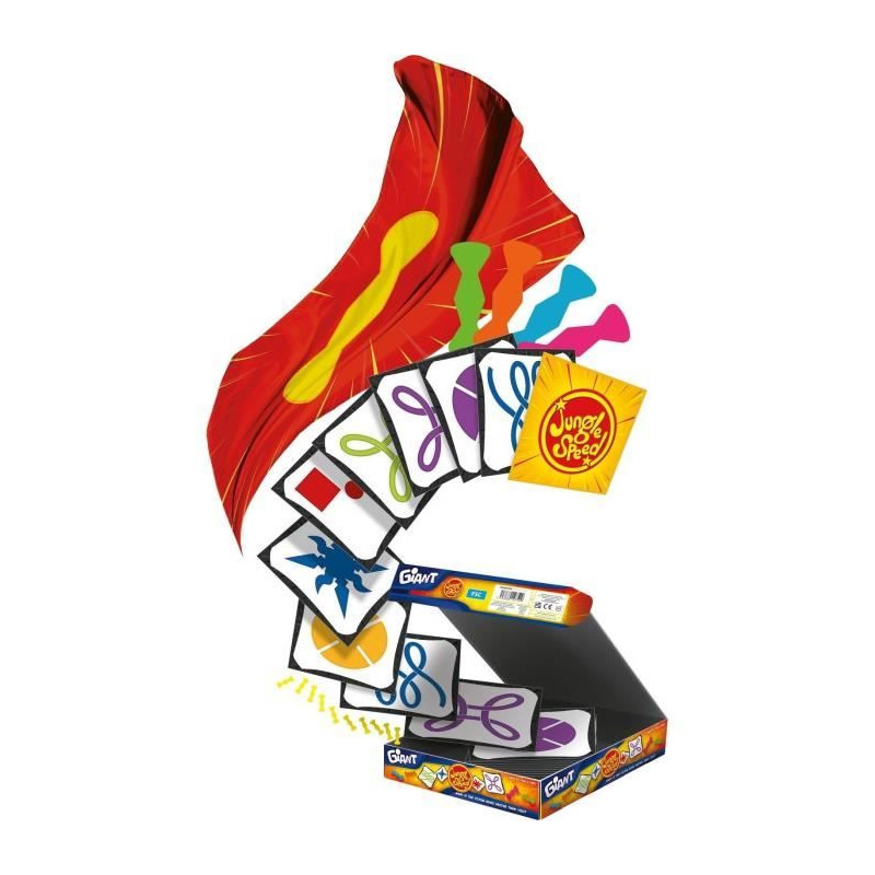 Jungle Speed Giant est un jeu d'ambiance alliant rapidité et observation, parfait pour les cours de récréation et les jardins. Avec des objectifs asymétriques, il promet des éclats de rire et des moments de folie entre amis ou en famille. Idéal pour les enfants a partir de 6 ans, ce jeu se joue a partir de 3 joueurs.