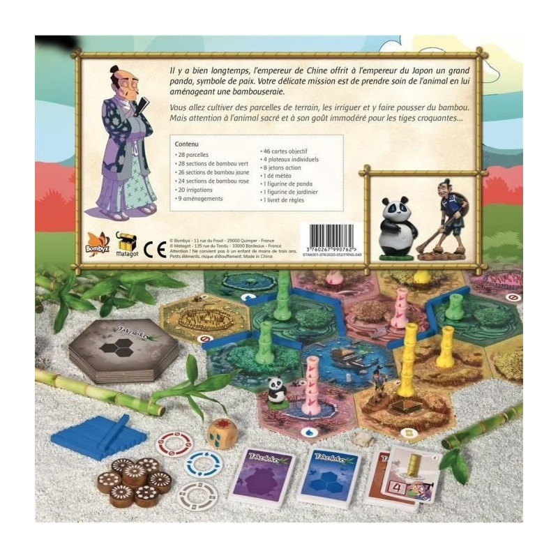 Cultivez vos bambous et gérez vos parcelles tout en nourrissant le panda pour gagner. Utilisez le panda pour contrarier vos adversaires et optimiser vos cultures. Un jeu de stratégie classique, élu jeu de l'année en France en 2012 !