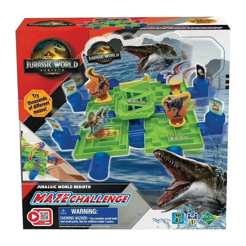 Une nouvelle mission t'attend sur l'île des dinosaures ! Le parcours change a chaque partie : sauras-tu relever le défi et traverser le labyrinthe mouvant sans te faire piéger ? Ta bille devient une gyrosphere, lancée a toute vitesse dans un décor inspiré du film Jurassic World Rebirth. Passe par les 4 checkpoints pour atteindre la ligne d'arrivée, mais attention aux différents pieges qui se trouveront sur ton chemin ! Remplace les figurines 2D avec les figurines que tu as collectées dans les autres jeux Jurassic World d'Epoch Games. a toi de jouer, jeune aventurier !