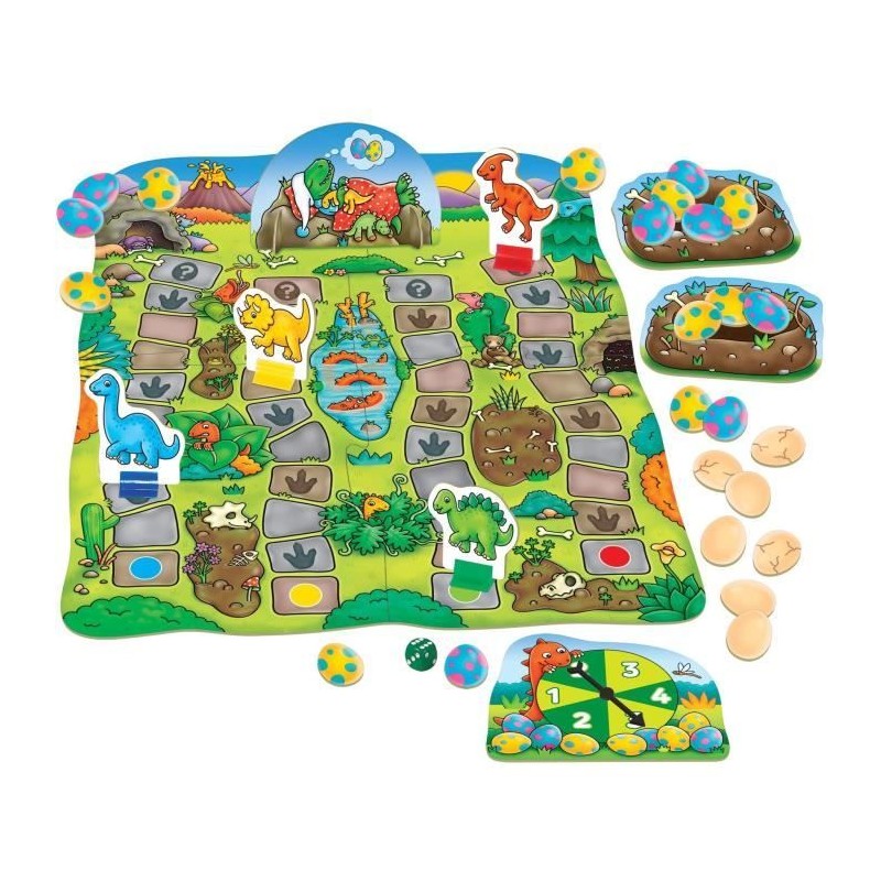 Le T-Rex a volé tous les oeufs et c'est a vous de les récupérer ! Dans ce jeu de société d'action et de réflexe, les joueurs courent pour récupérer un oeuf en évitant les empreintes de dinosaures. Si le T-Rex se réveille, tout le monde fait un grand rugissement et le joueur doit revenir au début. Le gagnant est celui qui a le plus d'oeufs dans son nid a la fin de la partie.