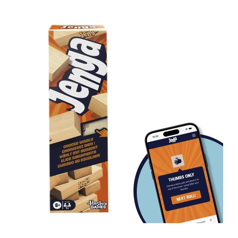 Jenga, Jeu de société d'ambiance, Jeu avec dé numérique, Hasbro Games, Des 8 ans