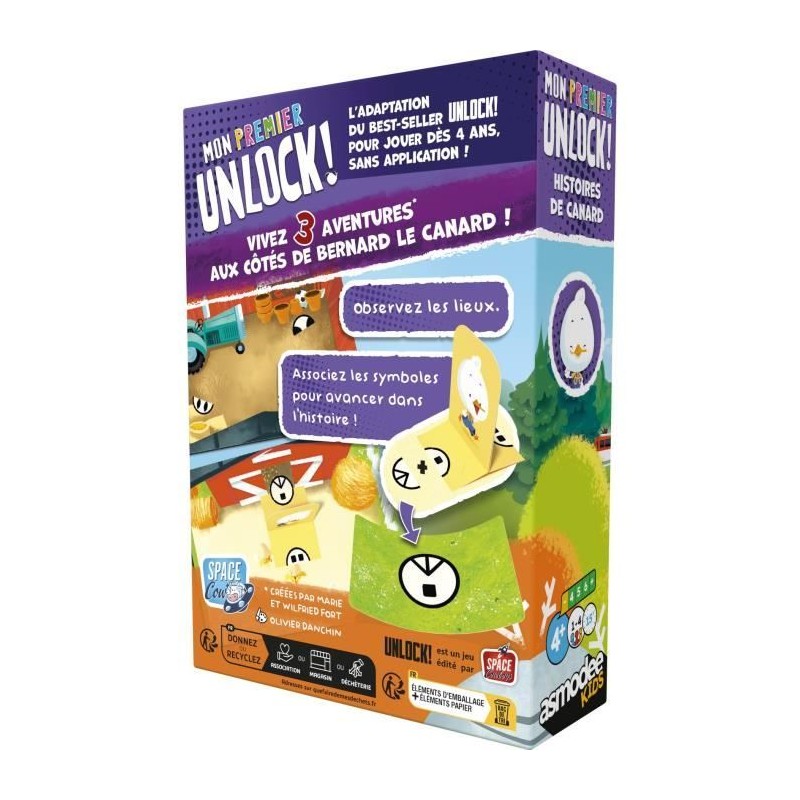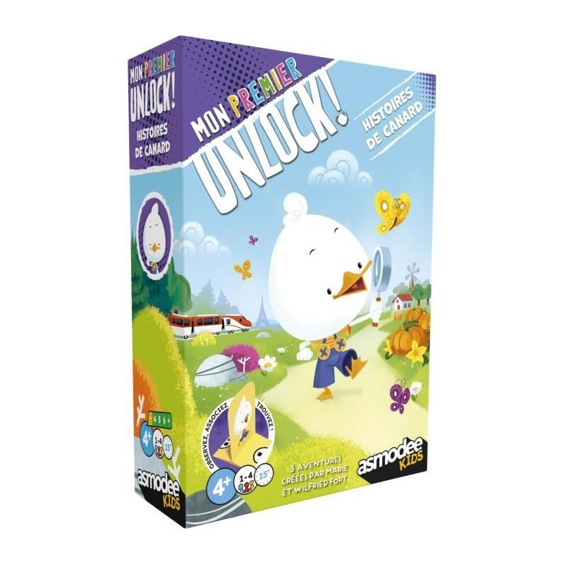 Mon Premier Unlock! est un jeu d'enquete et d'observation pour les enfants des 4 ans. Dans ces 3 aventures, partez en exploration avec Bernard le canard. Observez bien les cartes qui forment un paysage et vous révelent progressivement leurs indices. Associez les symboles pour réussir tous ensemble votre mission.