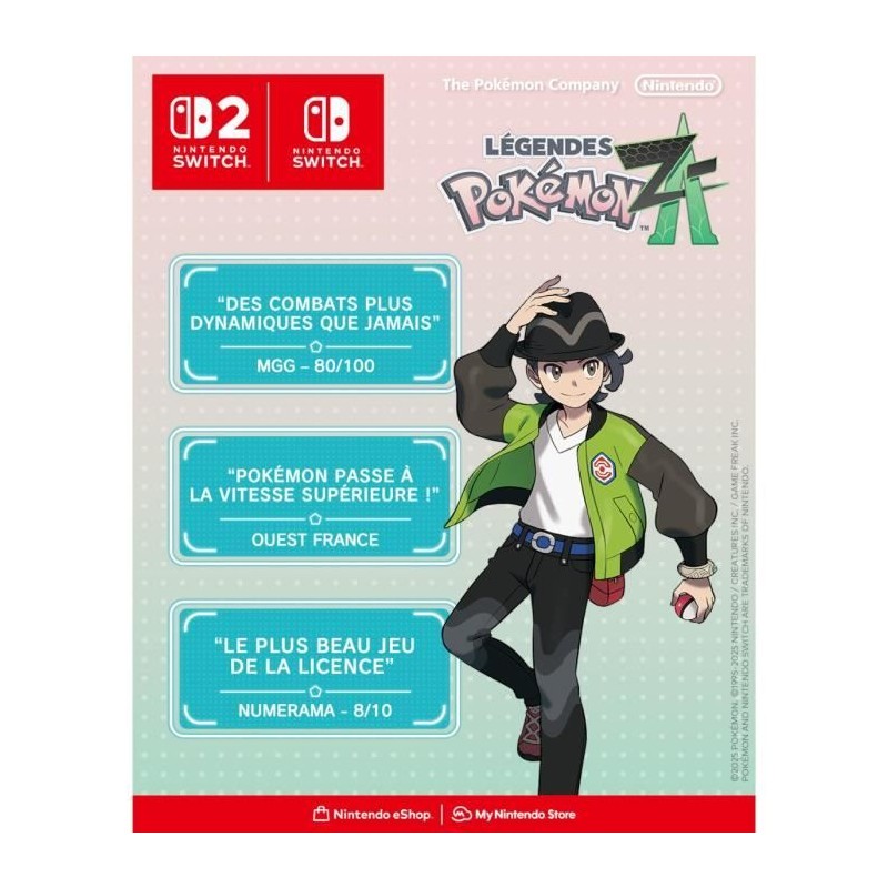 Embarquez dans une toute nouvelle aventure Pokémon avec Légendes Pokémon : Z-A - Nintendo Switch 2 Edition ! Dans ce nouvel opus de la série « Légendes », explorez les rues de la célebre ville d'Illumis, où humains et Pokémon vivent en parfaite harmonie ! Capturez de nouveaux Pokémon et créez votre parfaite équipe de combat : pour la premiere fois dans la série principale, dresseurs et Pokémon se déplacent ensemble et agissent en temps réel pour lancer des attaques dévastatrices ! Enfin, maîtrisez les Méga-Évolution Pokémon pour débloquer le plein potentiel de votre équipe et devenir le meilleur dresseur ! Et grâce a la puissance de la Nintendo Switch 2, arpentez Illumis avec une résolution et une fréquence d'images améliorées !
