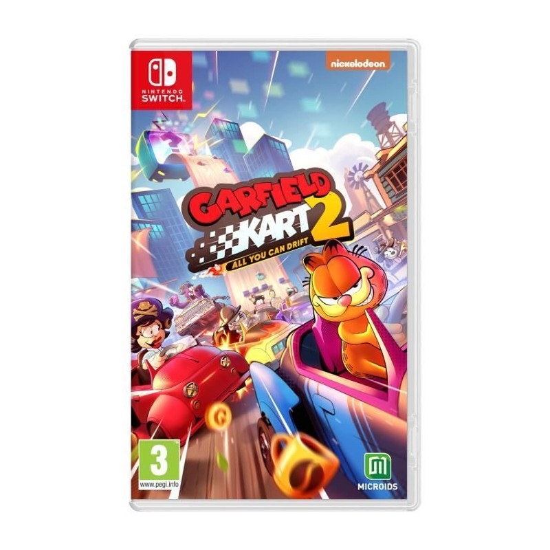 Participez a des courses effrénées avec Garfield et ses amis dans Garfield Kart 2 sur Nintendo Switch. Incarnez 8 personnages emblématiques, personnalisez vos karts et explorez des mondes colorés. Profitez d'un mode multijoueur local ou en ligne et utilisez des objets bonus pour prendre l'avantage. Date de sortie : 10/09/2025.