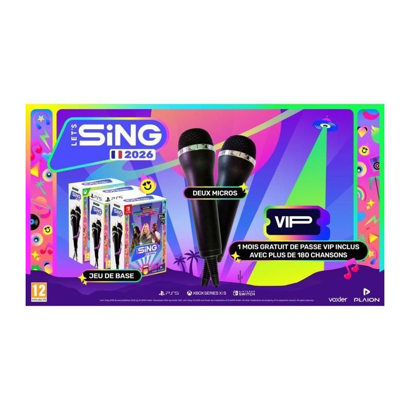 Découvrez Let's Sing 2026, le jeu de karaoké ultime avec les plus grands hits de l'année. Chantez en solo ou en duo, a la maison ou en ligne. Cette édition spéciale inclut 2 micros pour des soirées inoubliables !
