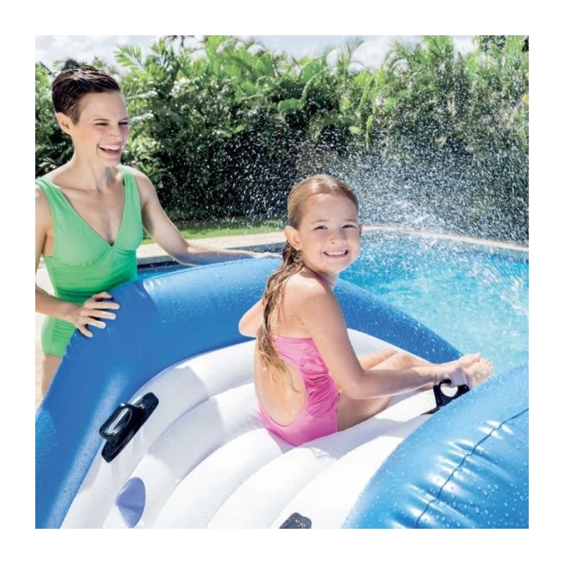 Toboggan pour piscine enterrée 333x206x117cm Des heures de glissade ! Jet d'eau a relier au tuyau d'arrosage pour garder la surface de l'eau toujours glissante 5 chambres a air - 6 poignées de maintien Tres résistant grâce a son vinyle renforcé 50/100eme Poids maximum autorisé sur le toboggan : 80 kg