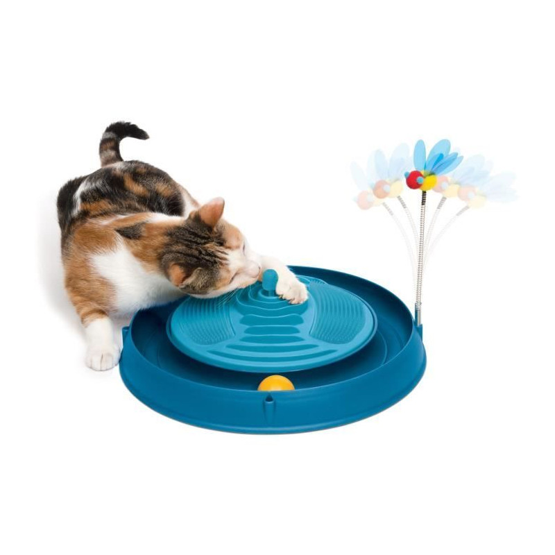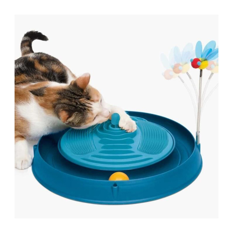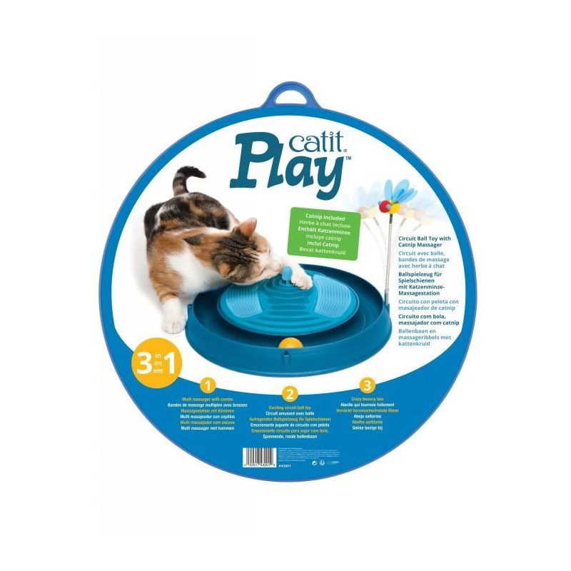 Jouet pour chat - CATIT - Circuit avec balle et herbe a chat - Bandes de massage multiples - Abeille a ressort