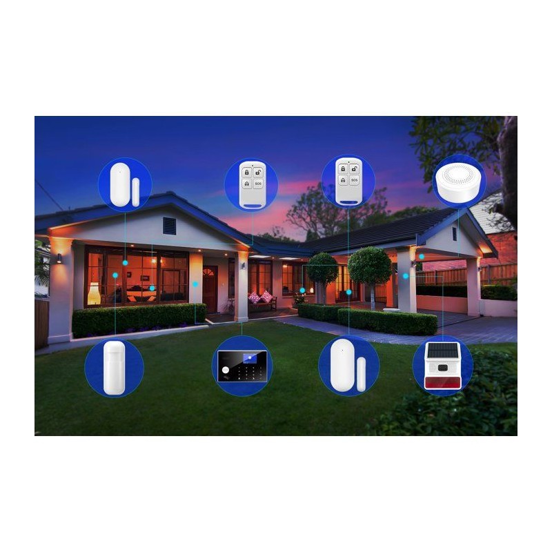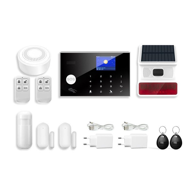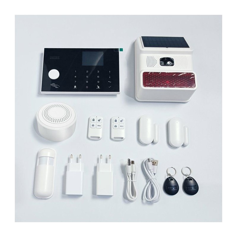 Sécurisez votre maison en toute simplicité avec cette alarme connectée pilotable via l'application Link2home. Son écran 2,5'' et son clavier facilitent la gestion, tandis que la sirene intérieure 90 dB et la sirene extérieure solaire 100 dB assurent une protection complete. Doté d'un systeme anti-arrachement, de télécommandes 4 fonctions et de badges RFID, ce kit inclut tout le nécessaire : centrale, détecteur de mouvements, capteurs d'ouverture et sirenes. Compatible Tuya et Alexa, alimentée via USB : une sécurité moderne et intuitive.