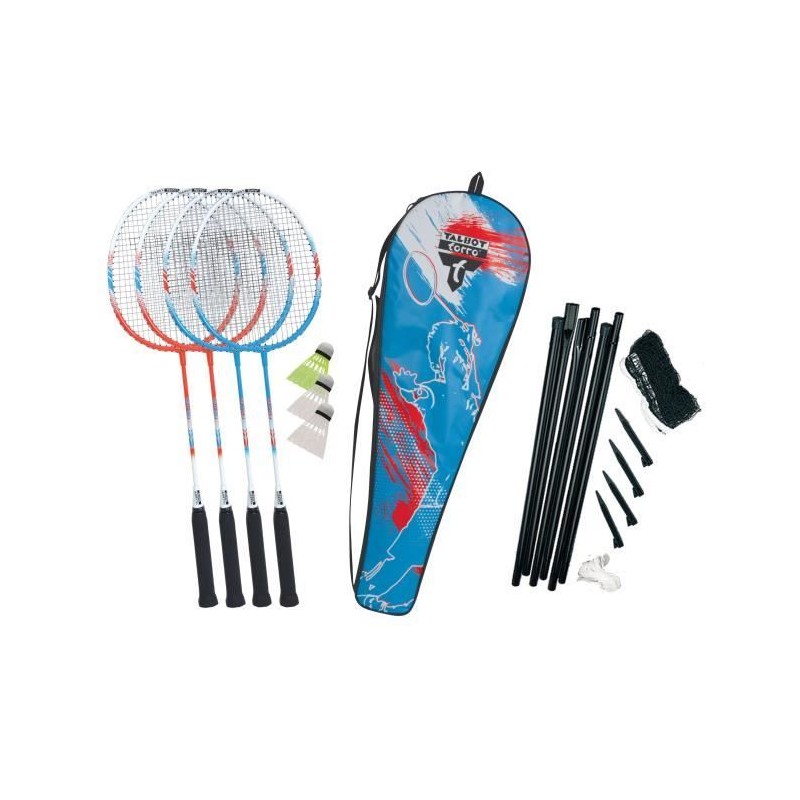 Set de badminton - TALBOT TORRO - 4 Fighter - 4 raquettes - Cordage multifilament avec oeillets - 3 volants synthétiques