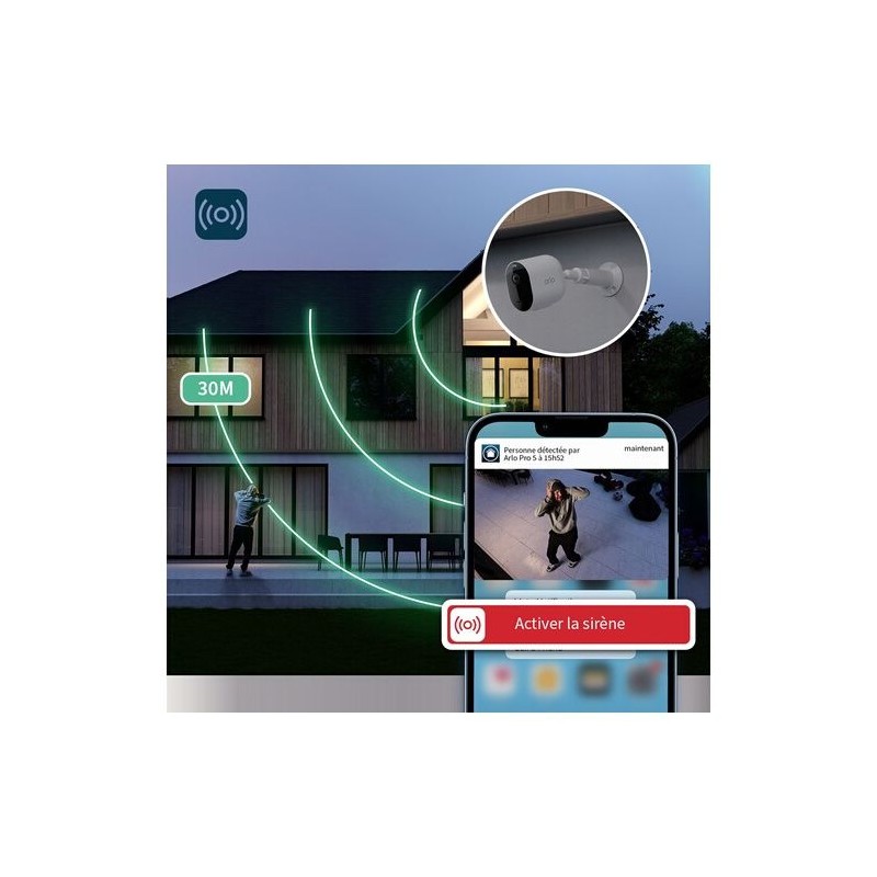 Découvrez le pack de 4 caméras de sécurité connectées Arlo Pro 5 2K+. Avec une vision nocturne couleur avancée, une autonomie de batterie améliorée et une connectivité Wi-Fi double bande, protégez votre maison efficacement. Profitez d'un champ de vision de 160° et d'une sirene intégrée pour dissuader les intrus.
