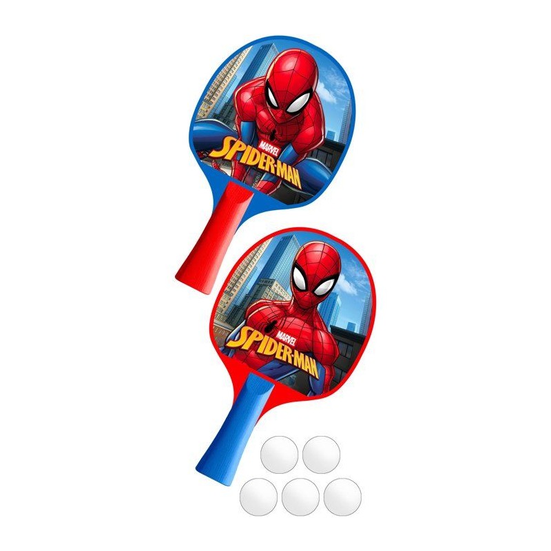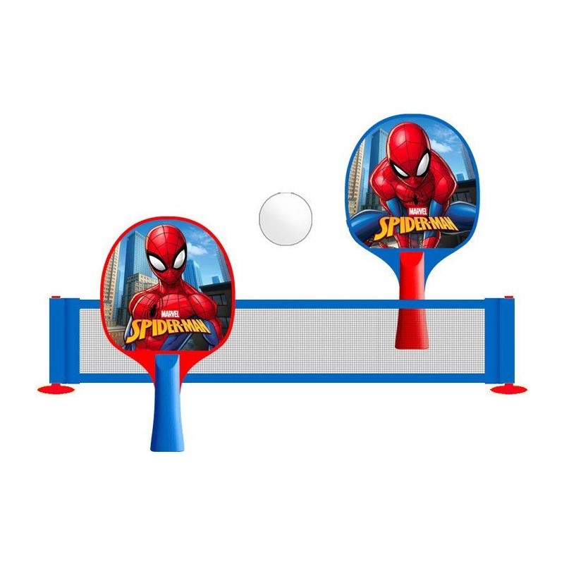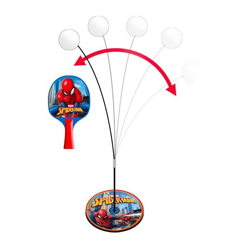 Set Spider-Man 2-en-1 avec filet ventouses, 2 raquettes, 5 balles et tige flexible 360°. Idéal pour apprendre le ping-pong de maniere ludique et progressive. Favorise précision, agilité et concentration, en solo ou en duo.