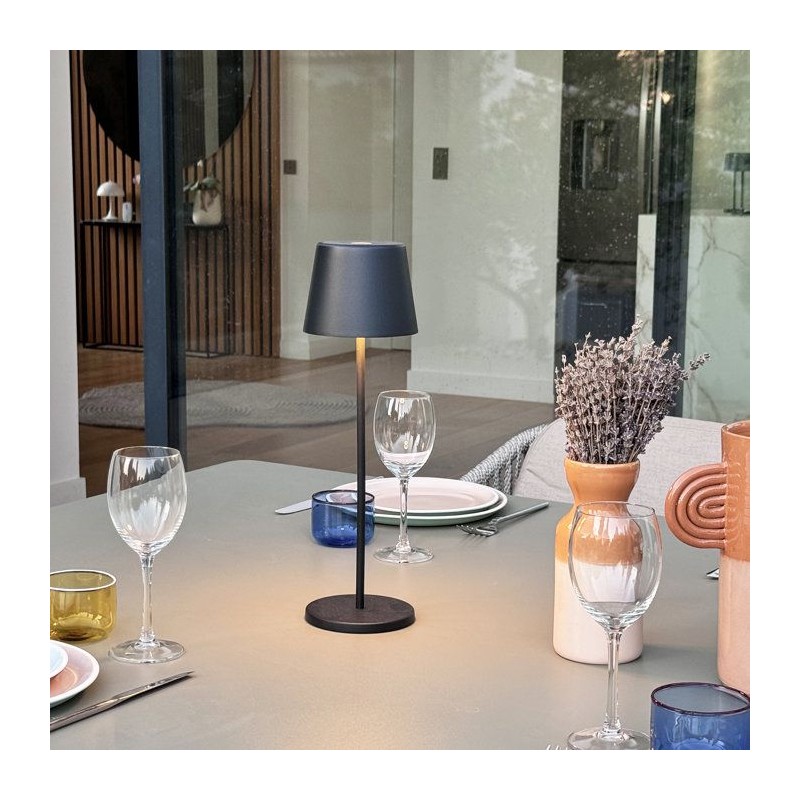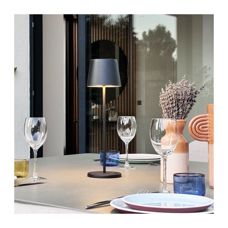 Lampe de table sans fil - LUMISKY - KELLY BLACK - Aluminium noir - LED blanc dimmable - rechargeable - H38 cm