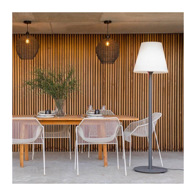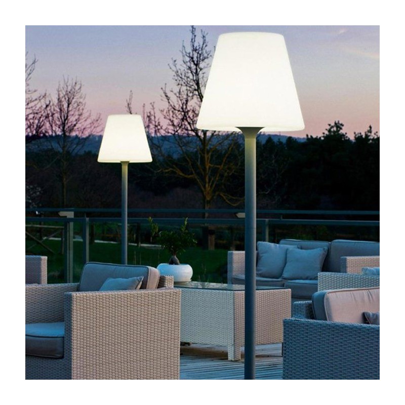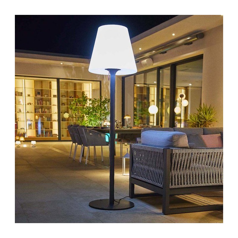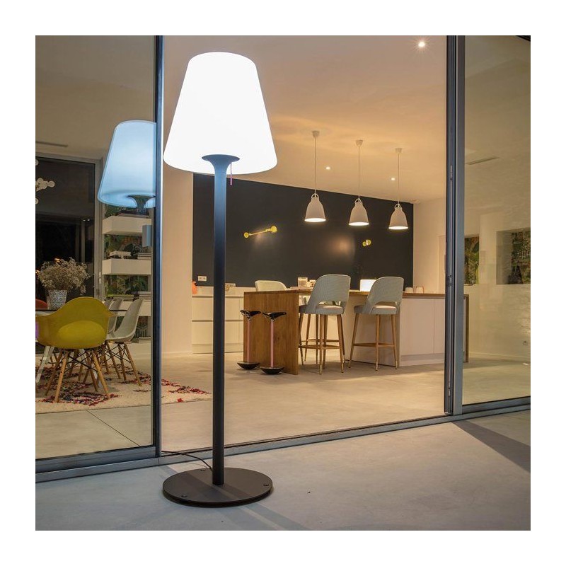LAMPADAIRE LED : Standy W180 est un lampadaire filaire LED blanc froid. Cette lampe se distingue par son design moderne et épuré. Elle est idéale comme lampe design, lampadaire de jardin ou encore pour illuminer vos fetes. a vous de choisir ! UTILISATION EXTÉRIEUR / INTÉRIEUR : apres avoir branché votre lampadaire sur secteur (prise de courant 220 V), vous pourrez utiliser cette lampe design de partout, aussi bien a l'extérieur qu'a l'intérieur. Le lampadaire Standy W180 apportera a votre piece une décoration tendance et originale. PRATIQUE : cette lampe tendance peut s'utiliser comme lampe d'extérieur pour la terrasse, lampe pour le salon ou bien comme lampe de décoration intérieur/extérieur. La lampe pratique Standy W180 s'adapte a toutes les situations. Elle se nettoie facilement avec de l'eau tiede et du savon doux. INTENSITÉ : le lampadaire Standy W180 possede une luminosité blanc froid. Il fonctionne avec 1 ampoule culot E27 fournie et changeable. Cette lampe éclaire vraiment avec son flux lumineux de 950 lumens. ROBUSTE : la lampe LED design d'une hauteur de 180cm et 48cm de large est protégée contre les éclaboussures (IP44) et résiste aussi aux UV. Le pied du lampadaire est en acier. Standy W180 se décline en 2 tailles (150 et 180cm).