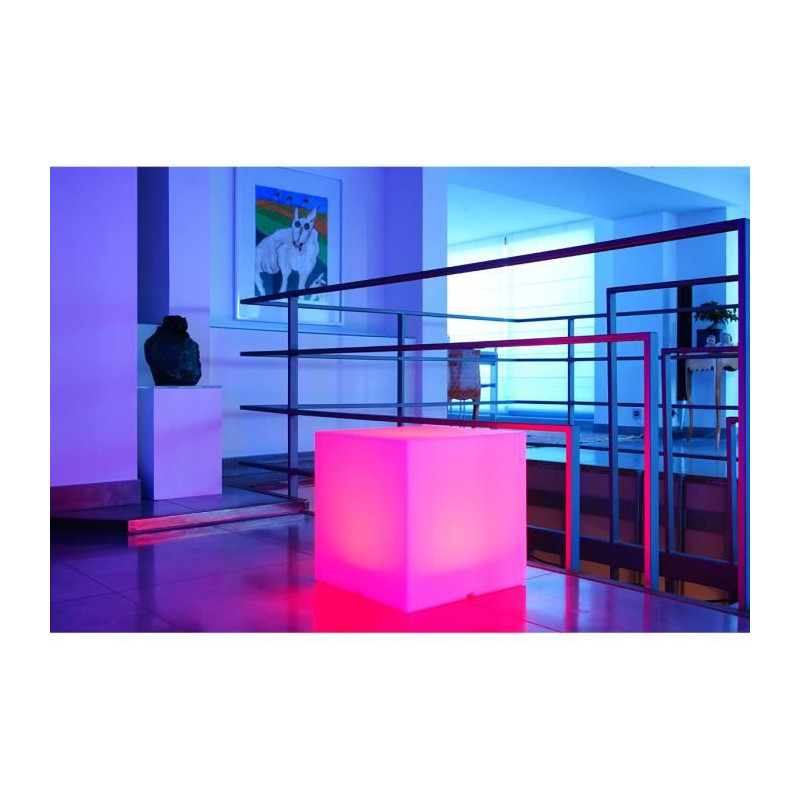 CUBE LUMINEUX LED SANS FIL : Carry C40 est un cube lumineux tabouret sans fil avec recharge sur socle a induction, télécommande et base LED multicolore. Cette lampe a poser se distingue par son originalité mais également par son autonomie de fonctionnement (jusqu'a 12h). Lampe a poser autonome, elle apportera a vos intérieurs et extérieurs une touche fun et fera toute la différence en matiere de déco. UTILISATION EXT