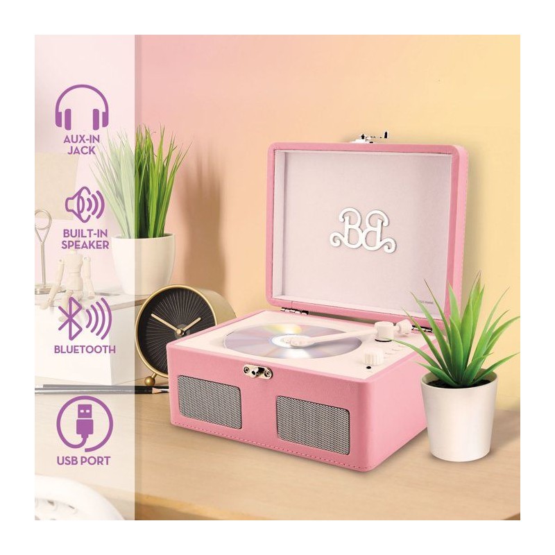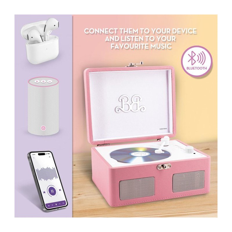 Redécouvrez le plaisir d'écouter vos CD avec ce lecteur portable Barbie au style rétro chic. Plus qu'un lecteur, il se transforme aussi en enceinte Bluetooth moderne. Points forts : Lecture CD + musique sans fil Haut-parleurs stéréo intégrés Ports USB, AUX et carte TF Style vintage inspiré du phonographe