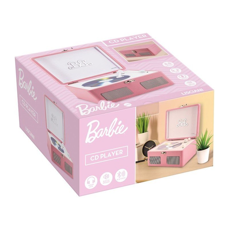 Lecteur CD Vintage - LISCIANIGIOCHI - Barbie Wireless CD Player - Bluetooth - Haut-parleurs stéréo - Des 12 ans - Rose