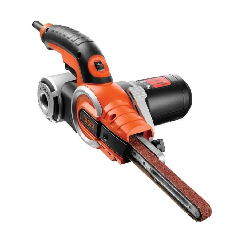 La lime électrique BLACK + DECKER KA902EK est équipée d'une vitesse variable de la bande allant de 900 a 1400 trs/mn, d'un interrupteur anti-poussiere et d'une action cyclonique pour une excellente aspiration et collection de la poussiere. Livrée en coffret avec 1 bras droit 13 mm, 1 bras droit 6 mm et 1 bras coudé 13 mm et bandes abrasives. Garantie du fabricant 2 ans.