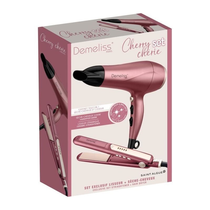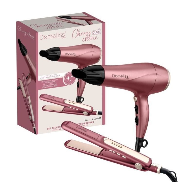 Coffret set lisseur + Seche-cheveux - DEMELISS - 2200 W - Cherry Chérie