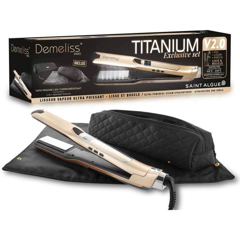 Coffret lisseur vapeur + tapis trousse 2-en-1 - SAINT ALGUE - Demeliss Exclusive Set Tita V2 - Titanium - Gold