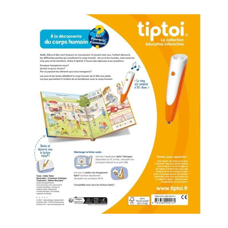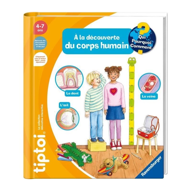 Découvrez le corps humain de maniere interactive avec le livre interactif tiptoi® de Ravensburger. Ce jeu éducatif électronique, sans écran, est adapté aux enfants a partir de 4 ans. Le livre est composé d'un jeu interactif qui permet de découvrir le corps humain de maniere ludique. Les enfants pourront apprendre tout en s'amusant grâce a ce jeu éducatif interactif sans écran.