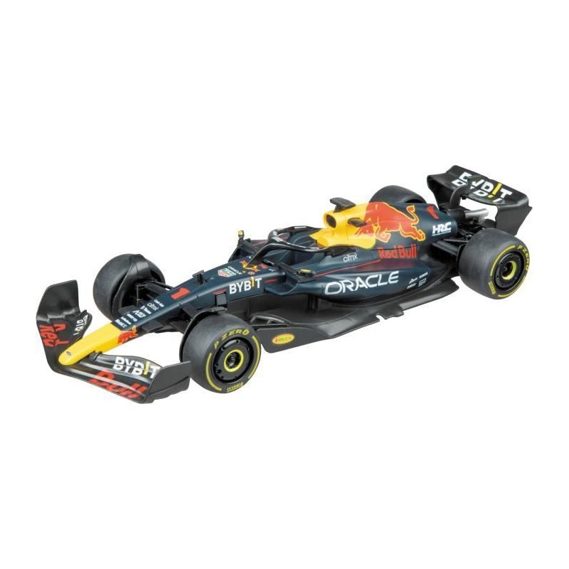 Redbull F1 RB18 radiocommandée (modele de Max Verstappen, triple Champion du Monde de 2021 a 2023). Échelle 1:18eme (31 cm), toutes directions, 2,4 GHz, 8 km/h, stickers (déco F1) inclus, 5 piles AA non incluses.