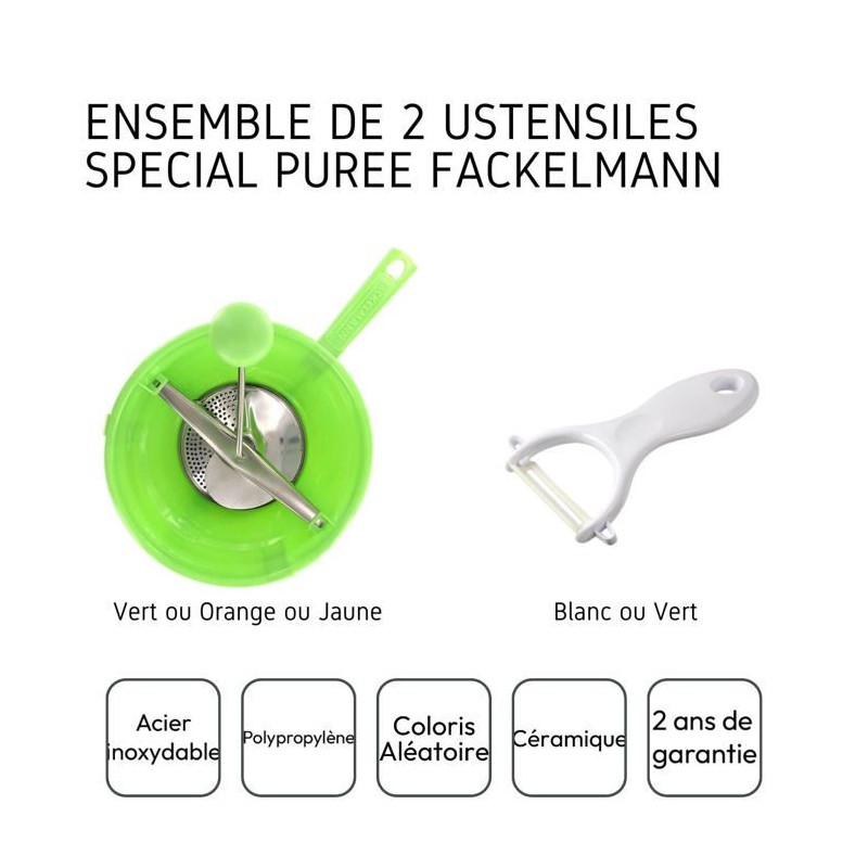 Ensemble de 2 ustensiles spécial purée avec éplucheur et moulin a légumes - FACKELMANN -