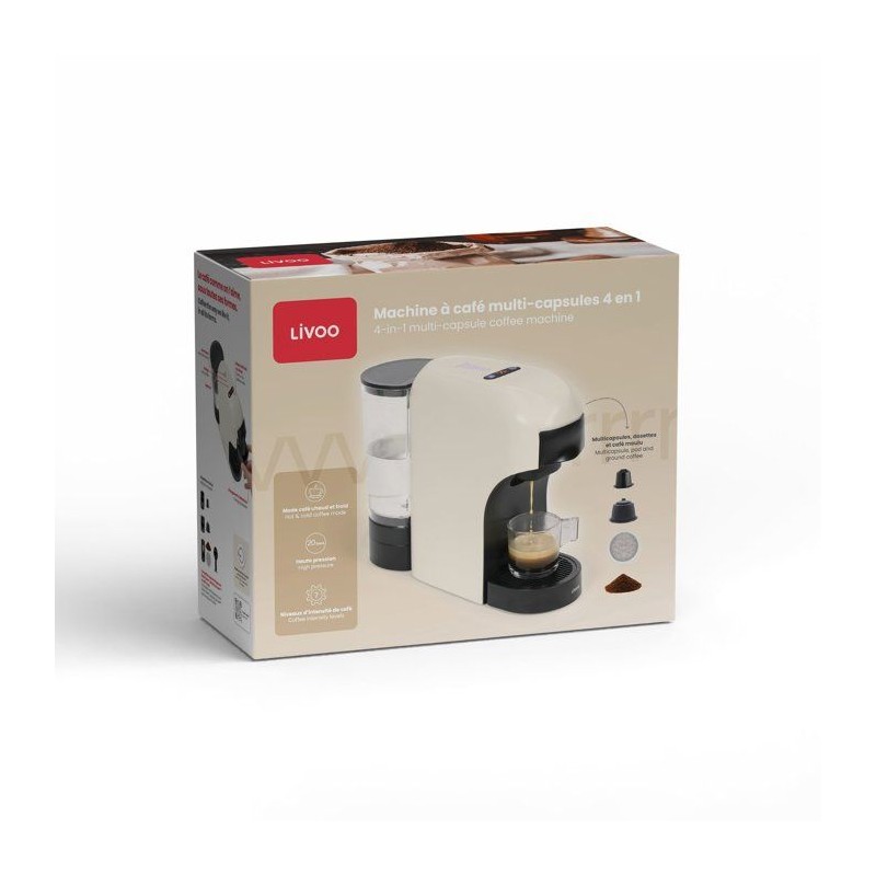 Machine a café multi-capsules 4-en-1 - LIVOO - DOD217C - 1400 W - 7 niveaux d'intensité du café - Creme