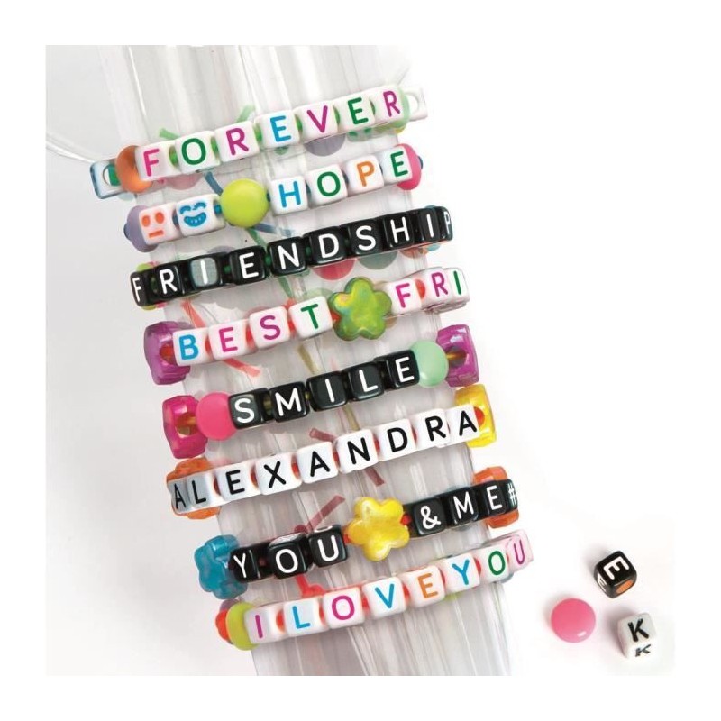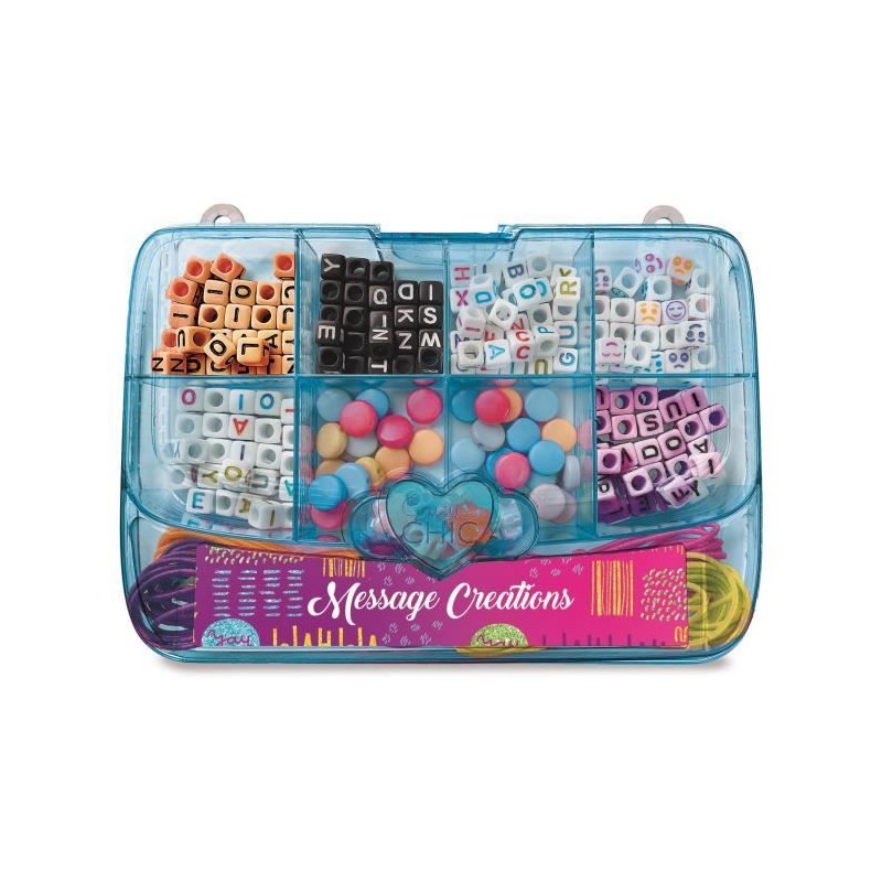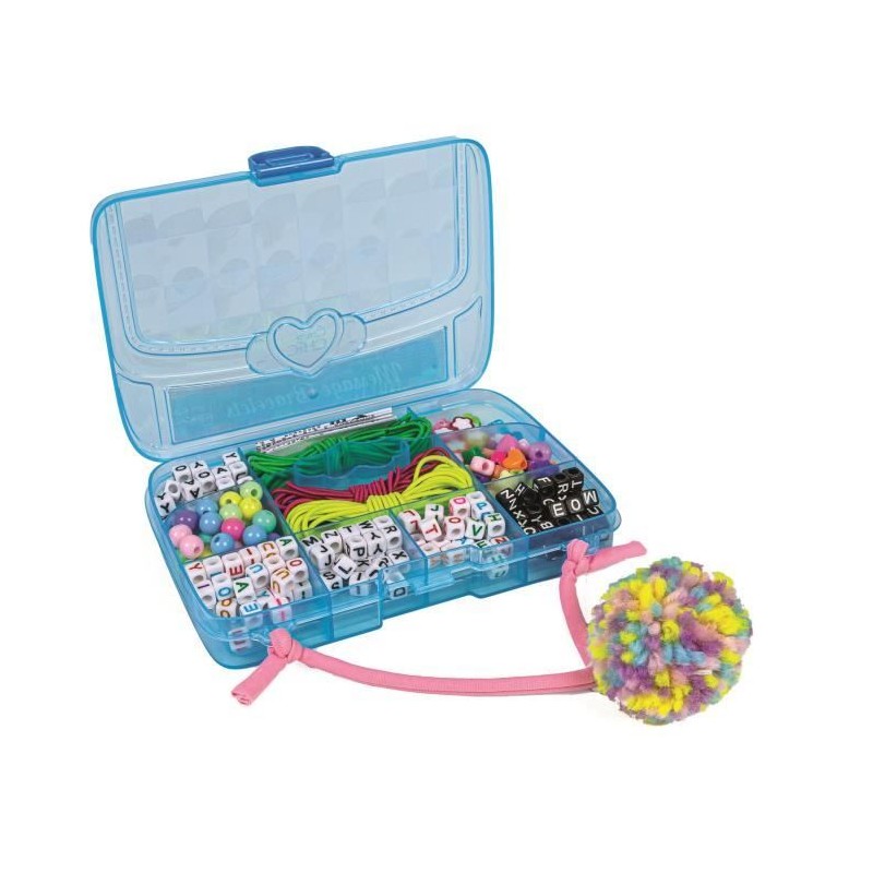 - Un coffret comprenant de nombreuses perles pour des créations originales et personnalisées. - Existe en bleu ou en rose, avec, a l'intérieur, des accessoires totalement différents qui permettent de créer des bracelets tendances. - Perles colorées, lettres et cordons élastiques... tout le nécessaire pour réaliser des créations fantastiques ! - Une activité qui permet de laisser libre cours a son imagination, en exaltant la créativité et le caractere unique de chacun.
