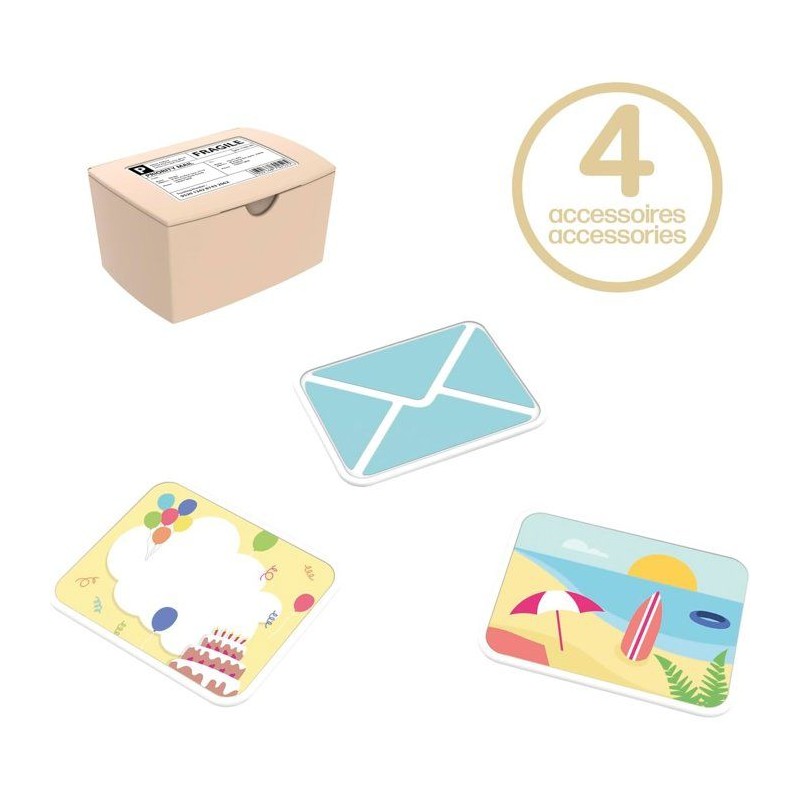 Envoie un colis ou une carte postale de tes vacances a un ami. Tu peux écrire a l'infini sur les surfaces dédiées (feutre non fourni) ! Tu peux aussi recevoir du courrier ! Le papillon est relevé ? Il est temps d'aller récupérer ton colis dans ta boite aux lettres.Grâce a sa fixation, tu peux suspendre ta boite aux lettres a la fenetre, a la porte de ta maisonnette, ou meme la visser sur une structure en bois ou au mur de ta chambre ! A partir de 2 ans. Fabrication française. Ce jouet contient au moins 40% de matiere recyclée.