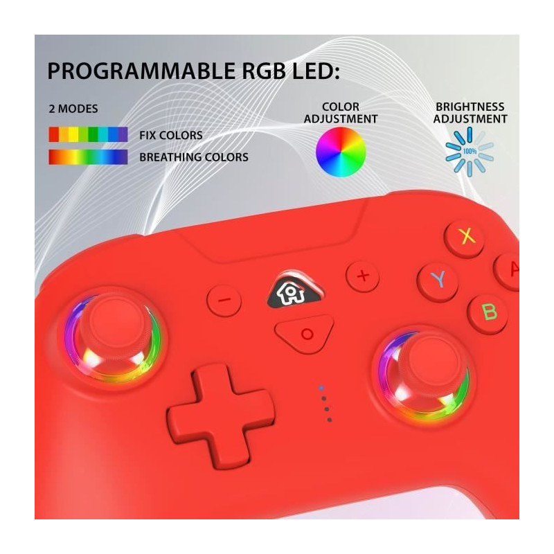 Manette sans fil - SUBSONIC - Switch 2 / Switch - LEDs programmables - Vibrations - Gyroscope - Rouge