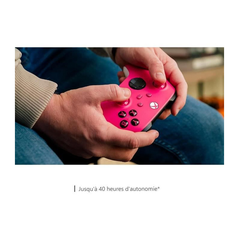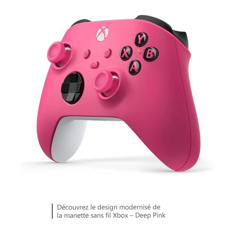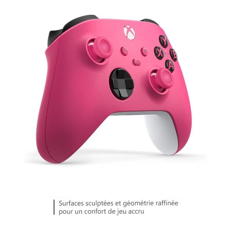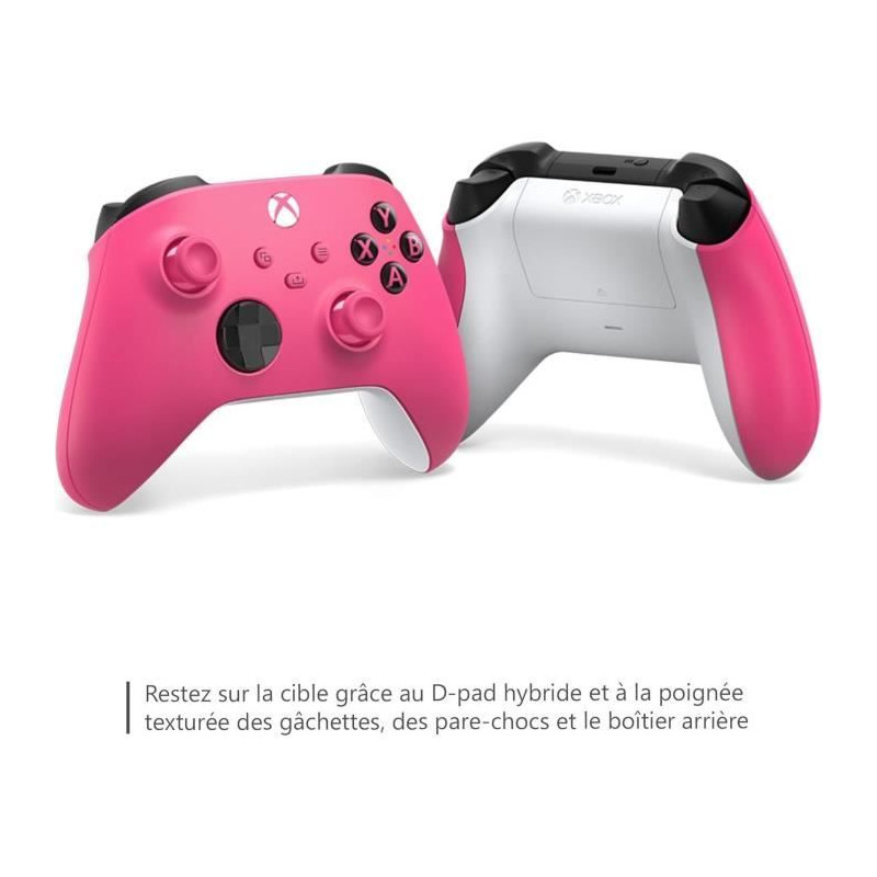 Découvrez la manette sans fil Xbox rose, alliant design moderne et confort optimal. Profitez de surfaces texturées et d'une géométrie raffinée pour une expérience de jeu améliorée. Enregistrez et partagez facilement votre contenu grâce au bouton de partage. Connectez-vous et jouez sur plusieurs appareils en toute simplicité.
