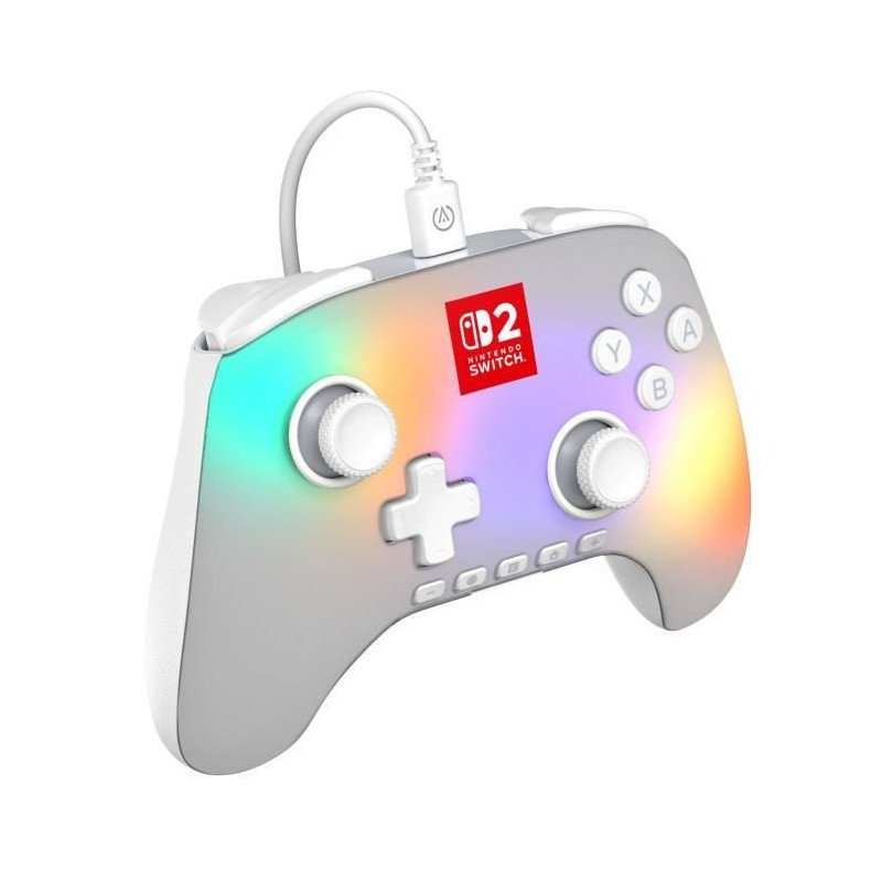 Découvrez la manette Lumectra blanche pour Nintendo Switch 2. Avec son rétroéclairage personnalisable, elle combine un design futuriste et des performances optimales pour une expérience de jeu immersive et stylée.