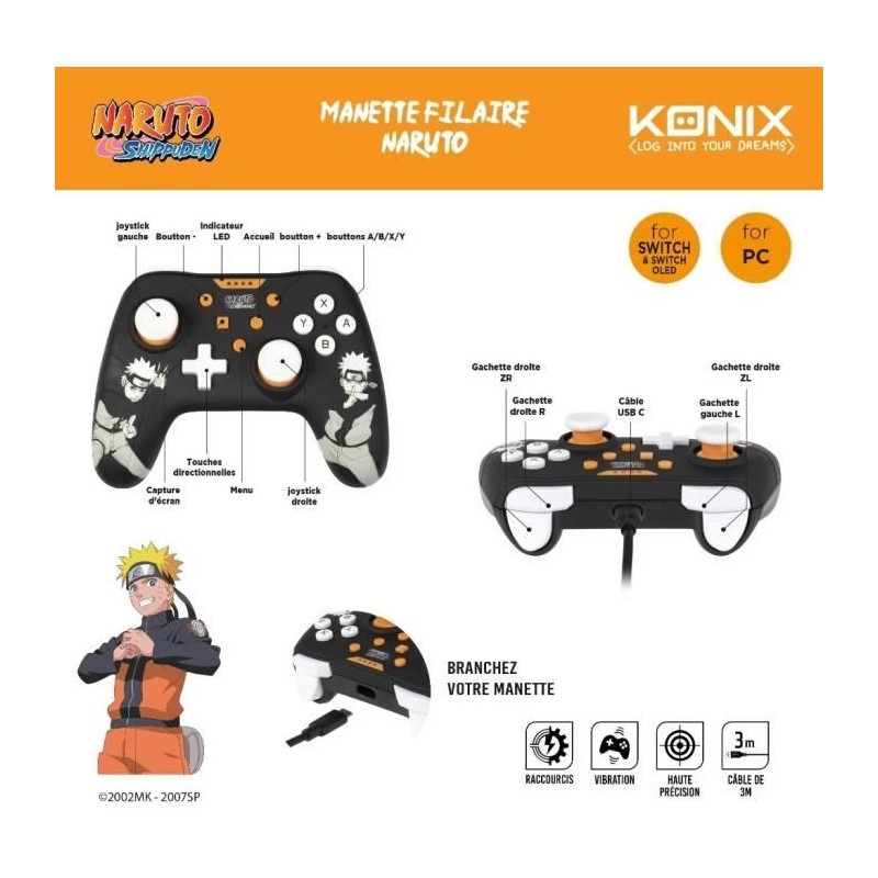 Manette de Jeu - KONIX - Naruto - Noir - Switch