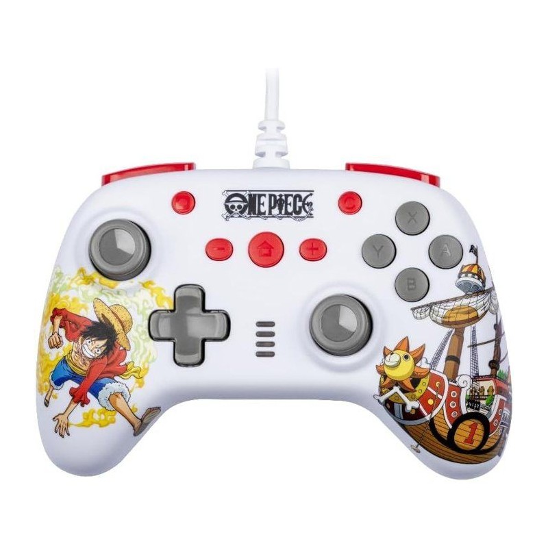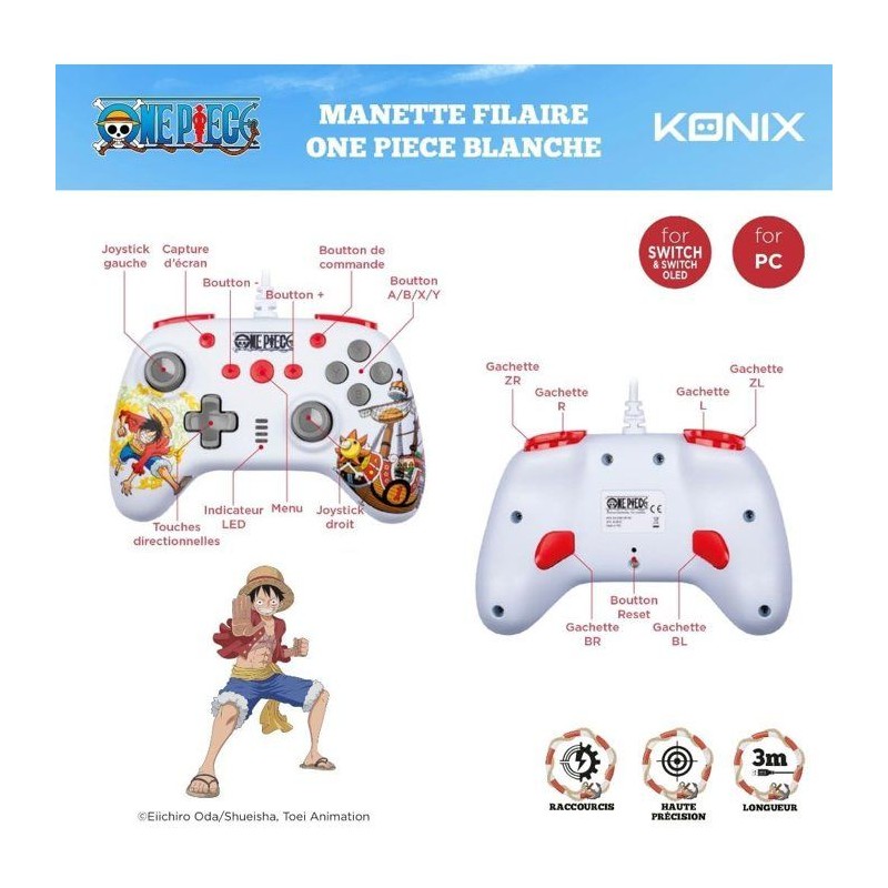 Manette de jeu - Nintendo Switch, Switch 2 et PC - One Piece - Filaire - Blanc - Fonction vibration - Câble 3 m - Luffy - Konix