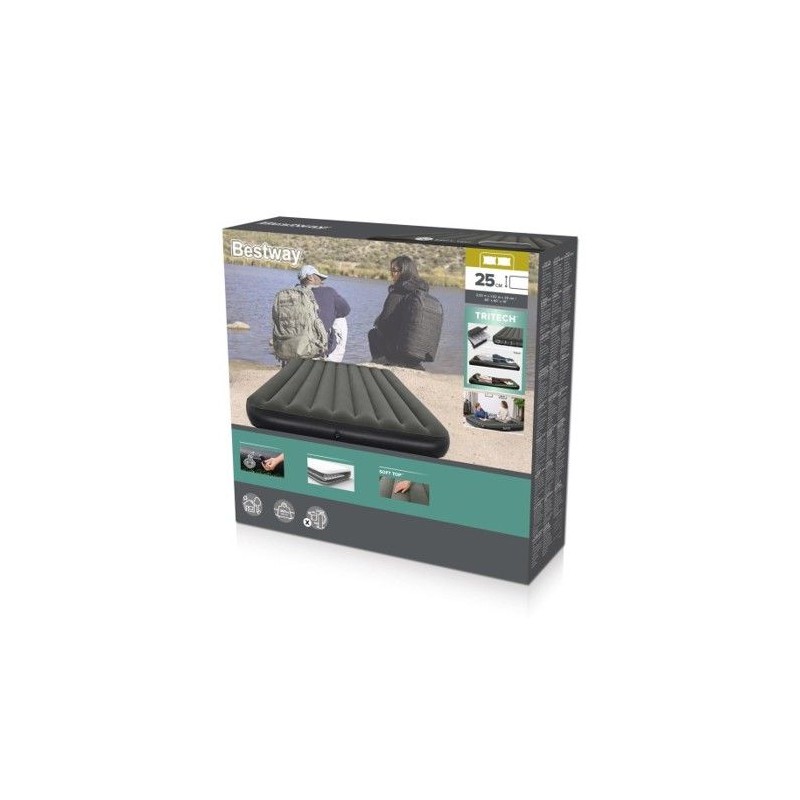Matelas gonflable Bestway Tritech pour 2 personnes, dimensions 2,03 m x 1,52 m x 25 cm. Confortable et durable, il est idéal pour le camping. Sa structure robuste en Tritech garantit un soutien optimal et un gonflage rapide grâce a sa valve a ouverture rapide.