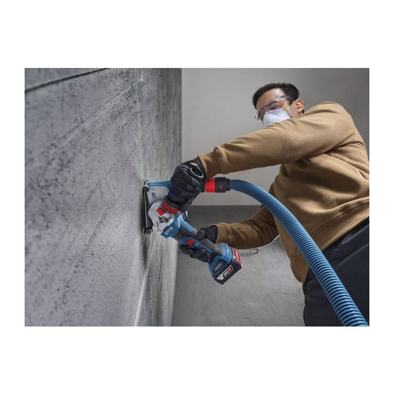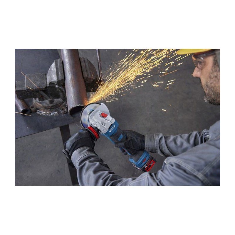 La PRO GWS18V-11PS est conçue pour la coupe de barres d'armature, de métal et de tôle ainsi que pour le meulage des métaux. Elle est optimisé pour les batteries Bosch haute performance.