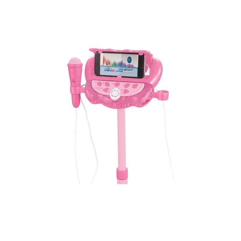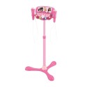 Microphone Barbie sur pied ajustable lumineux avec enceinte, 2 Micros et Effets vocaux, Enceinte Bluetooth